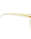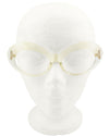 This clear set shows minimum wear and tear, the gold metal inner structure appears elegantly in the interior. Prescription lens removed, ready to add tinted sun glass lens or clear as preferred. Sold without original case. Average fit.