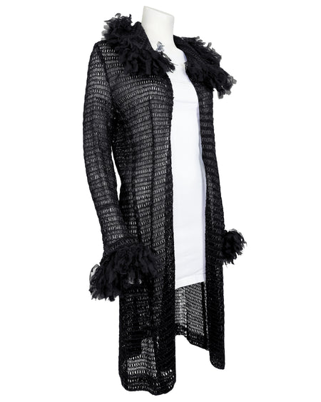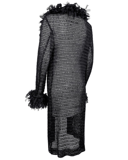 Black Moss Crepe Gown with Fuchsia Ruffle Detail