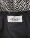 Late 1990's Valentino Boutique RTW herringbone swing coat with hood. Luxurious oversized black and white herringbone motif wool styled into a gentle swing shaped open front coat with large patch pockets and a soft hood. Lined in black fabric. Fit is OS-M,4-8 US. In excellent vintage condition, drycleaned and great for a transitional winter to spring look.
