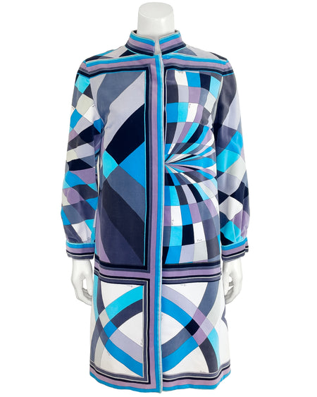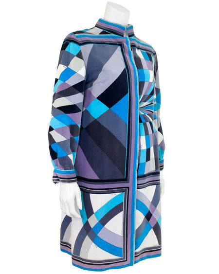 Blues and Greys Geometric Velvet Coat