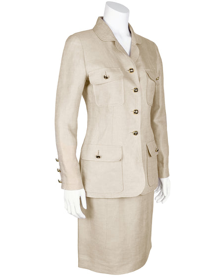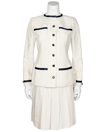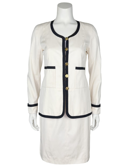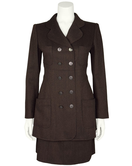 Black Polished Cotton Skirt Suit with Perfume Bottle Buttons