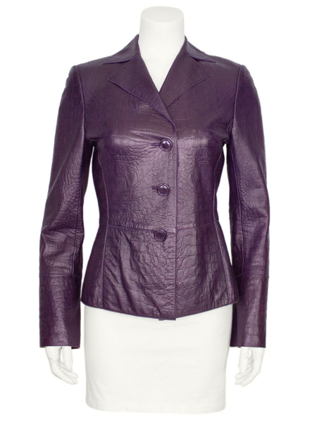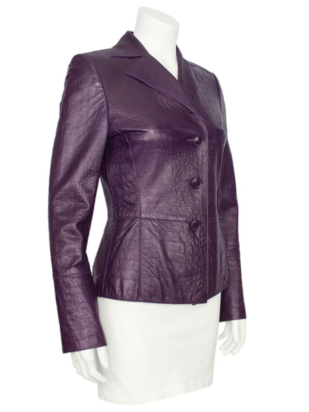 Plum Crocodile Embossed Leather Jacket