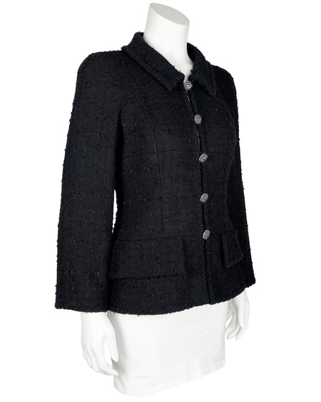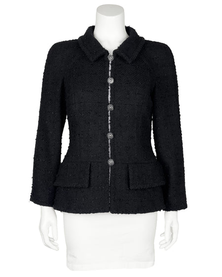 Black Wool and Mohair 2 Pocket Fitted Jacket