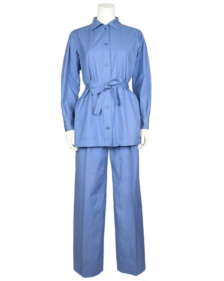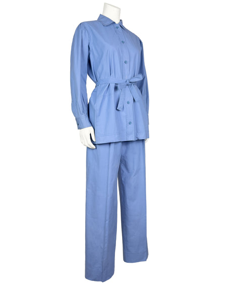 Blue Cotton Safari Suit