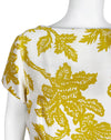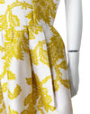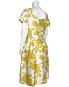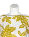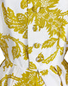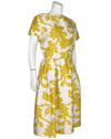 Christian Dior London 1950's Demi Couture yellow & cream bold leaf pattern silk dress.