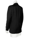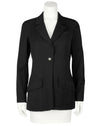 Black Mid Weight Wool Long Style Blazer With Logo Button