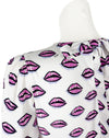 Coveted 2016 Prada Spring Summer Collection lis printed viscose and elastane blouse with long sleeves, round neckline and long ties at the back of the neck. Slim fit, well documented and very versatile. Goes well dressed up with black pants or jeans. No signs of wear, dry cleaned and ready to go. Marked size IT 40.