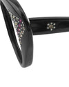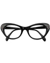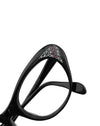 Cutler and gross cat eye black Italian acetate frames with red and clear crystal accents on the tips. Famous for their iconic designs and favoured by celebrities like Elton John, these cats-eye frames are for the bold at heart. The resurgence of eyewear as fashion is directly attributed to these two London based opticians. Excellent vintage condition, lenses removed allowing for prescription sunglass option. Sold without original case.