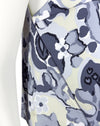 -Signature abstract floral print in shades of slate, periwinkle, ivory and soft butter yellow